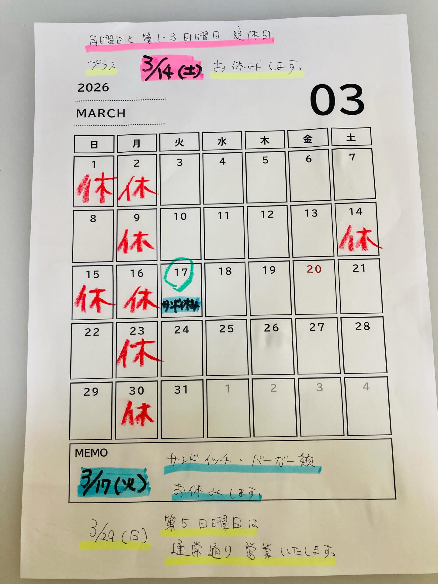 3月の休みのお知らせです💡